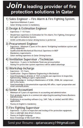 أعلنت شركة رائدة في حلول الحماية من الحرائق، عن طرح فرص عمل شاغرة لديها، للتخصصات التالية: